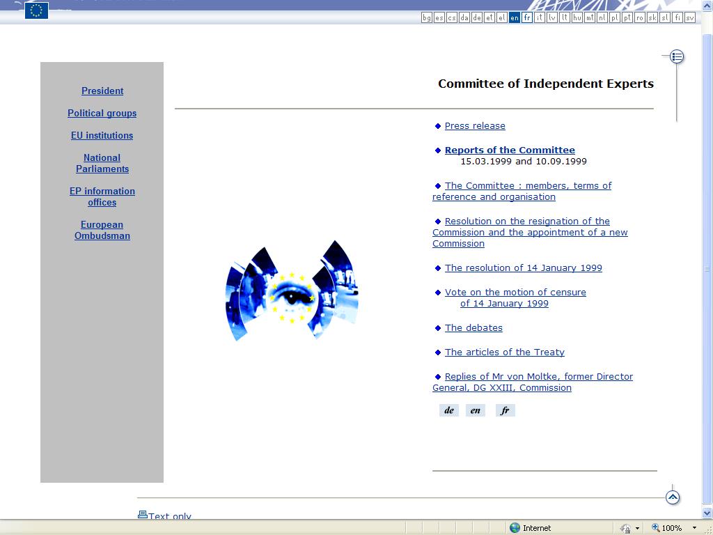 With the aim to investigate the ways the European Commission detects and deals with fraud was established the European Parliament's Committee of Independent Experts was set up in 1999. Link: http://www.europarl.europa.eu/experts/press/default_en.htm
